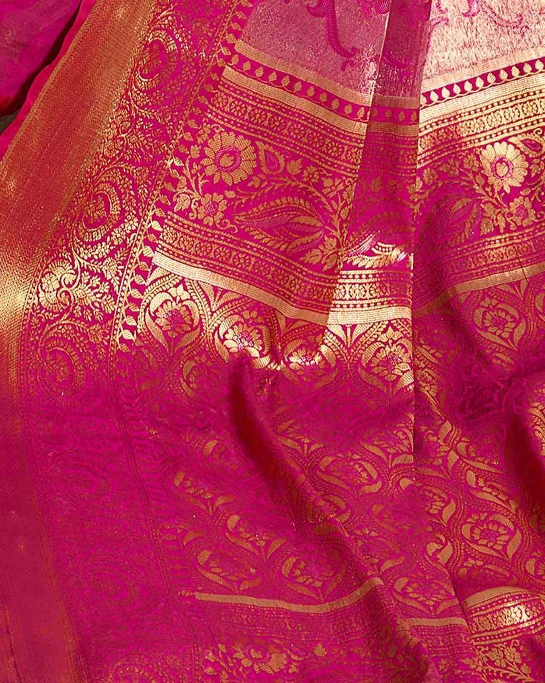 • The last image gives a detailed look of the blouse piece that comes with this saree (The model is wearing a blouse from our in-house wardrobe)